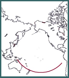 Map of the Pacific showing the path of the eclipse